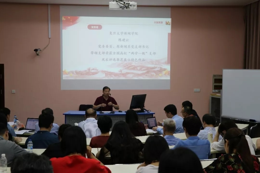新闻系党支部书记刘涛老师分别围绕“如何做好教师党支部工作建设”和“回望初心肩负使命”做了主题发言,就新闻传播院系的教师党员如何坚守马克思主义新闻观、做好党的新闻宣传舆论工作、守望初心坚定信念分享了许多他们的思考与做法。