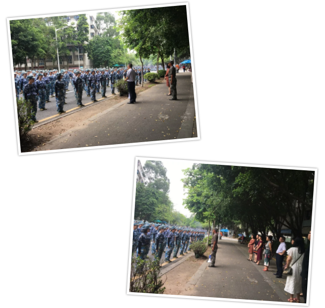 院领导们在田秋生院长的带领下来到了兰苑门口的新生训练场地,对18级军训的学生和导生们进行了慰问。到场的有田秋生院长、李雁书记、林仲英副书记、18级各班的班主任及全体学工办老师。