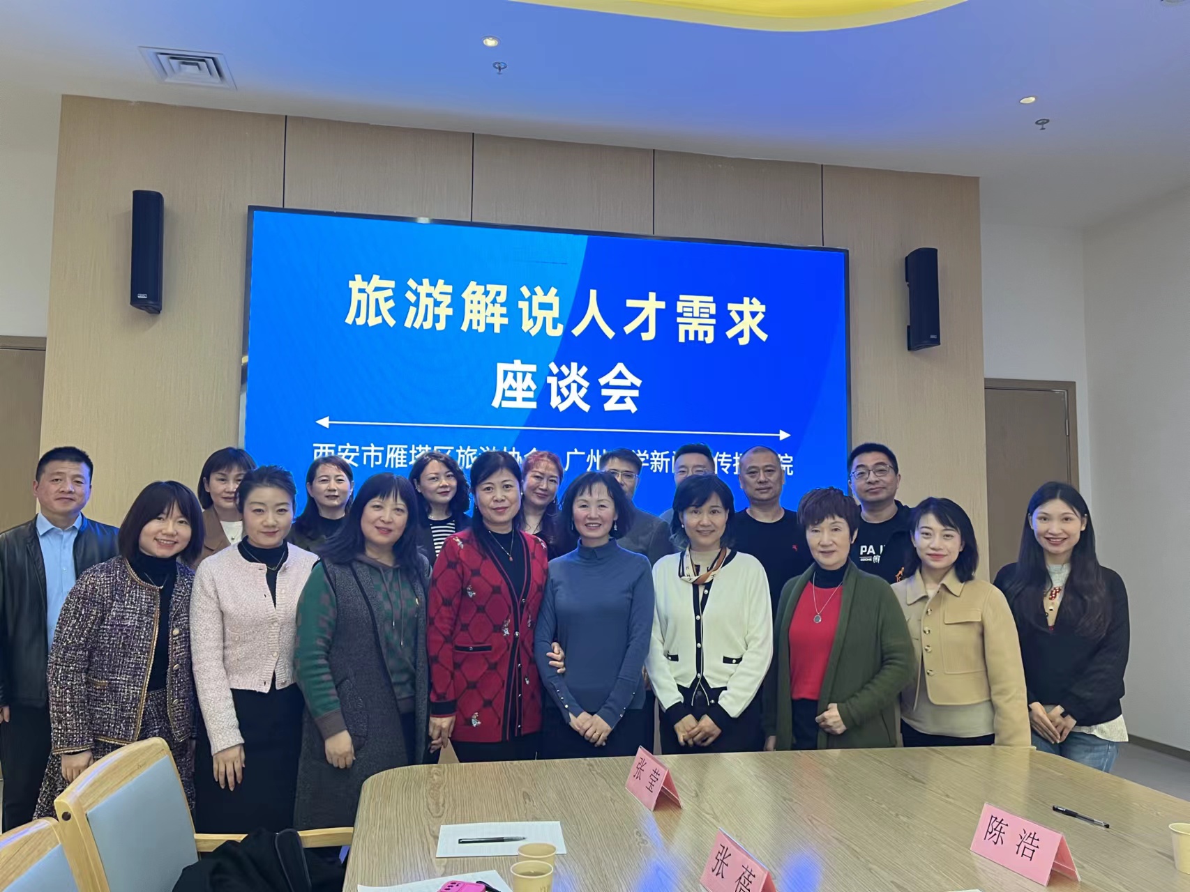 3月24日下午,考察团一行赴陕西省西安市雁塔区旅游协会就“旅游解说人才需求与培养策略”议题展开研讨,与西安市雁塔区旅游协会秘书长李明及相关单位的负责人进行了亲切交流。